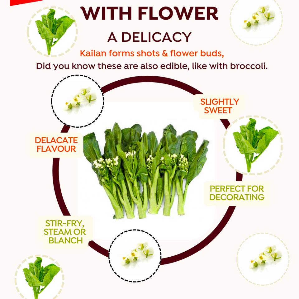 Kailan is one of the Chinese vegetables that is related to broccoli and bimi. The taste is also similar to that of broccoli, only slitghtly sweeter. Everything from this stump can be eaten, the stem and the leaf. Wash and cut them. You can blanch it first , or stir-fry it immediately.Delicious with oyster sauce , black bean sauce or a wok sauce.