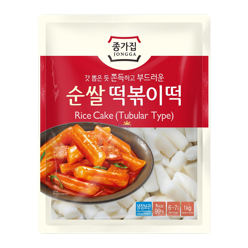 Rice cake, een deeg van water en rijstmeel. Kleefrijstmeel, of een mengsel van die twee, dat eerst wordt gestoomd en daarna een tijdlang gekneed wordt zodat de gluten goed vrij komen en het deeg super elastisch en plakkerig wordt. De structuur is chewy en plakkerig (als taaie Italiaanse penne), de smaak is die van rijst.