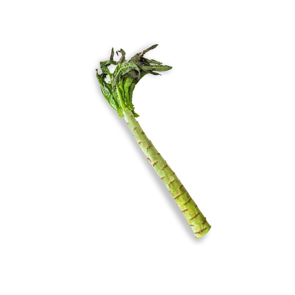 Dies ist unser chinesischer Stammsalat. Er stammt von einer alten chinesischen Kopfsalatsorte ab. Er wächst wie ein Staubwedel an einem dicken Stiel. Er ist ein etwas verrücktes Gemüse, aber erstaunlich schmackhaft und leicht zu verarbeiten! Die bitteren Blätter werden manchmal gegessen, aber es sind vor allem die Stängel, die bis zu 50 cm lang und 5 cm dick werden können! Der Geschmack ist eine Mischung aus Kopfsalat und Sellerie mit einem Hauch von Nuss und Süße. Die Textur ähnelt der einer festen, kernlosen Gurke. Auch die Farbe ist auffallend: ein durchscheinendes Grün.