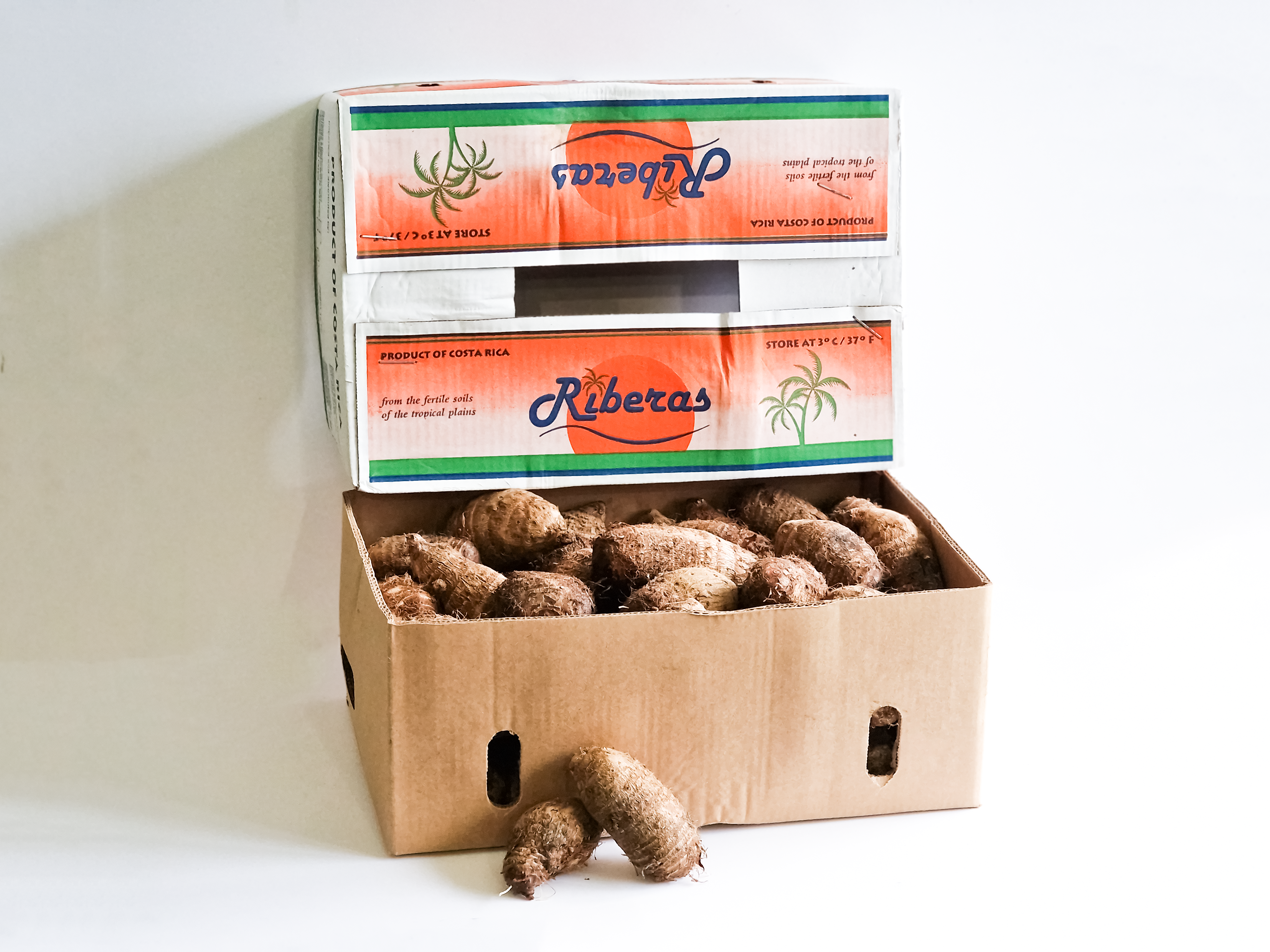 中文销售 Dies ist unsere Eddo, eine stärkehaltige Wurzel der gleichnamigen tropischen Pflanze. Sie hat eine harte, braune, haarige Schale und sieht daher aus wie eine Kokosnuss (Vorsicht: kochen Sie diese Wurzel, da sie giftig ist, wenn sie in großen Mengen roh gegessen wird. Nach dem Kochen hat die eddo eine kartoffelähnliche Struktur, aber einen köstlichen nussigen Geschmack.