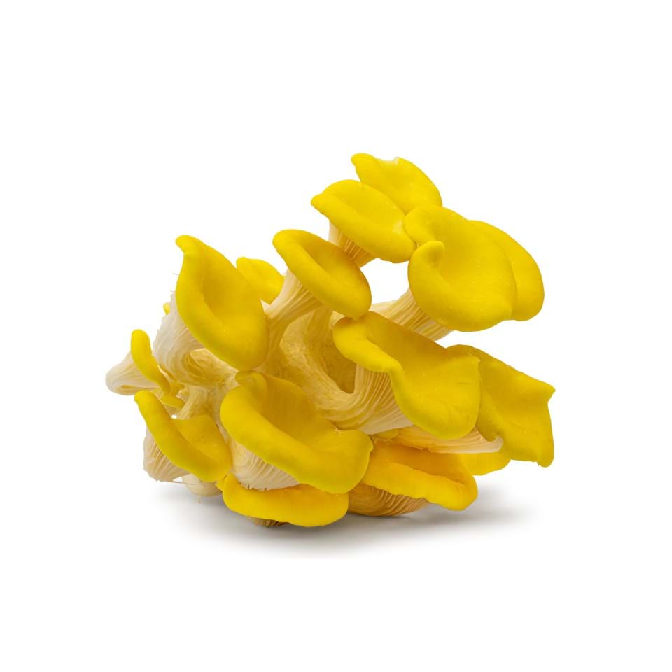 Dies ist unser gelber Austernpilz. Ein toller Wildpilz, mit dem sich Gerichte zubereiten lassen. Er sieht super cool aus und hat einen milden, nussigen Geschmack. Wie wäre es mit einem Steak aus gelben Austernpilzen! Braten Sie es mit etwas Olivenöl oder Butter und Knoblauch, bis es goldgelb und leicht knusprig ist.