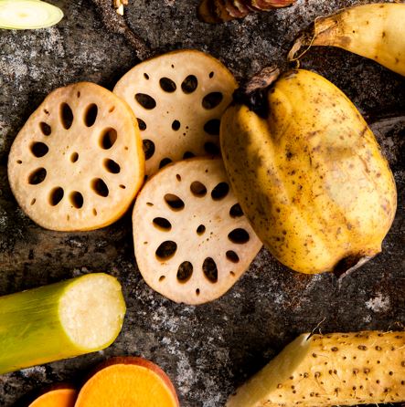 Die Lotuswurzel eignet sich hervorragend, um den Geschmack anderer Zutaten in das Rezept zu integrieren.