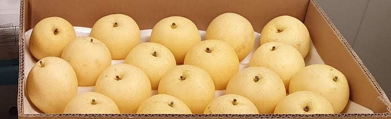 Die Nashi ist eine besondere Birnensorte: saftig, wässrig, frisch und vor allem knackiger. Der Name Apfelbirne bezieht sich auf die Form und den Biss, nicht auf den Geschmack. Sie schmeckt einfach nach Birne, mit einem Hauch von Rose, Ananas und Honig. Innerhalb dieser Art gibt es mehrere Sorten/Kultivare. In Asien wird diese Birne so hoch geschätzt, dass sie oft verschenkt oder zu besonderen (Familien-)Anlässen gegessen wird.