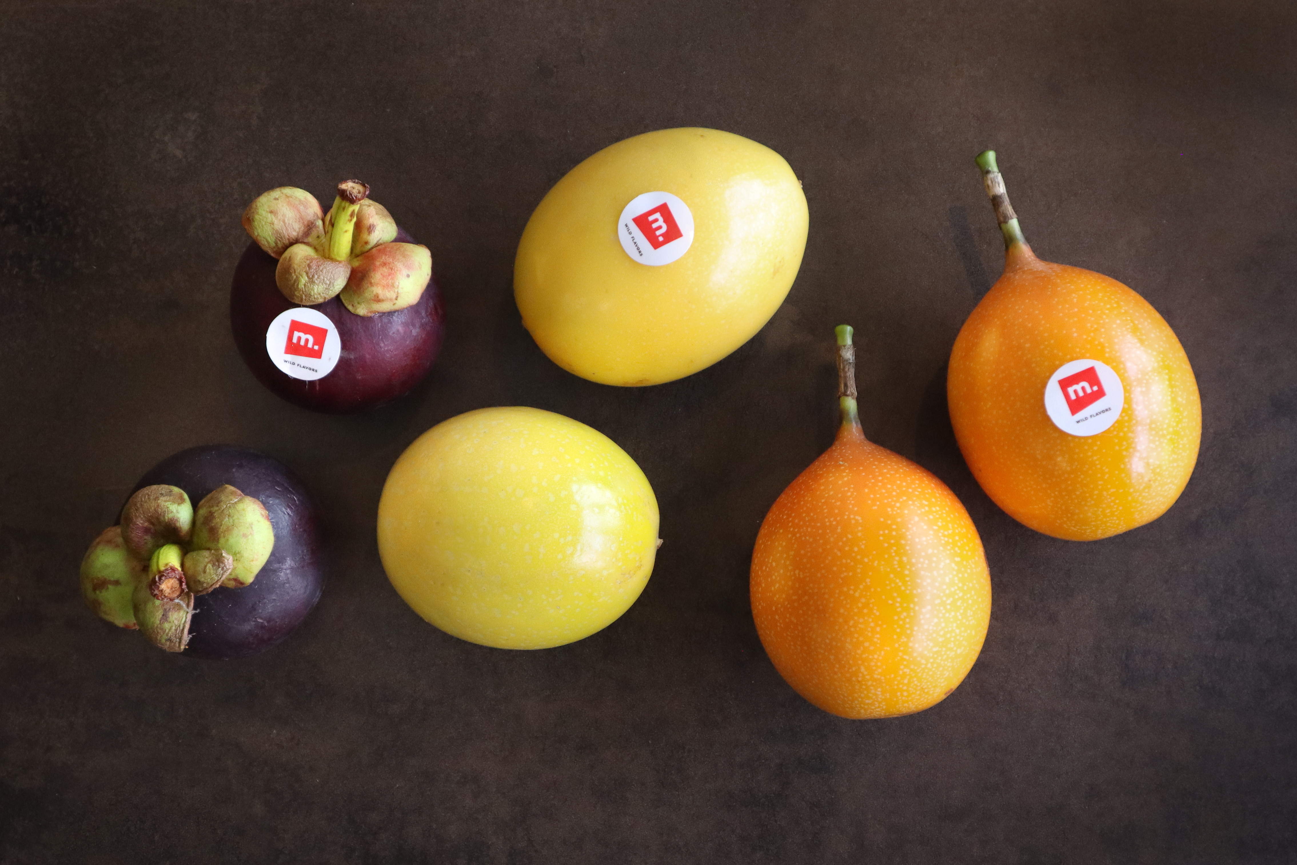 The Granadilla belongs to the Passiflora family, along with the passion fruit & maracuja. The Granadilla is the sweetest. With a thin soft orange skin, which is not edible. You eat the fruit by cutting it in half and scooping out the jelly-like flesh, that contains edible seeds that have a fresh, sweet-sour flavour.