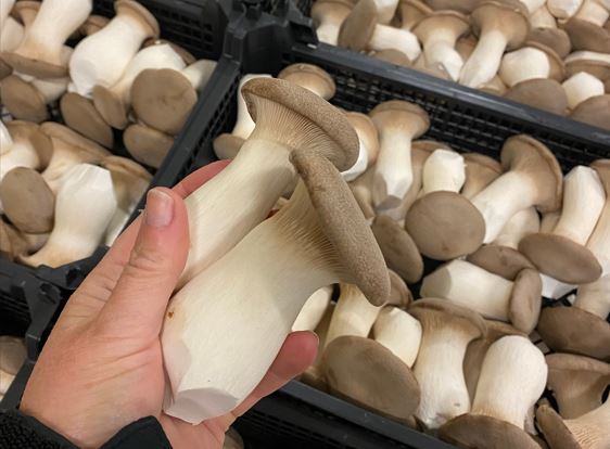 This is our Eryngii | 杏鲍菇, also known as King oyster mushroom. A firm mushroom with a velvety top.