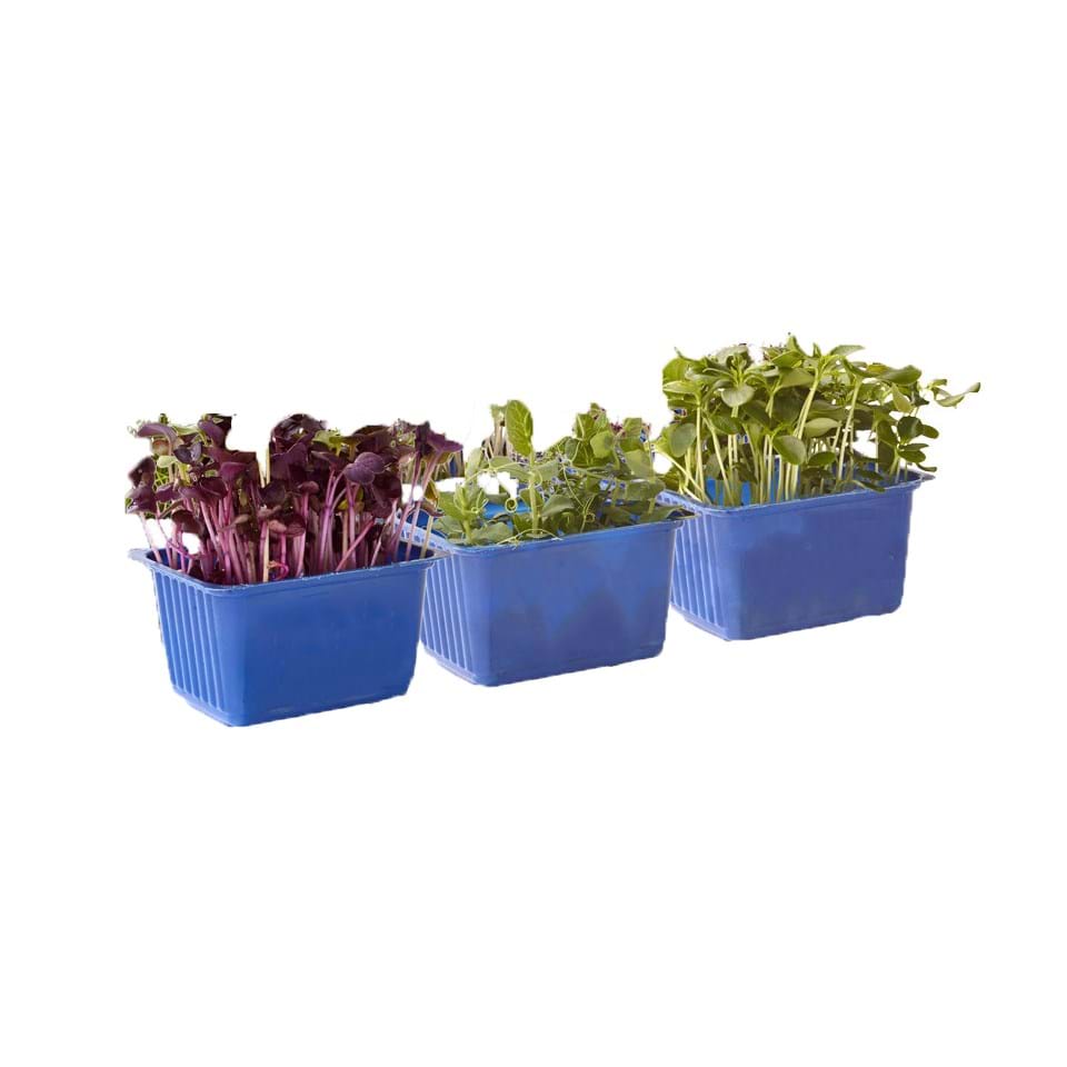 Sakura Mix, a cress mix that combines recognisable and distinctive flavours that can be used in a very wide range of situations; Borage Cress that goes well with fish. Tahoon Cress, which goes very well with game or mushrooms. Rock Chives with its intense garlic flavour. Sakura Cress and Daikon Cress that provide a spicy radish flavour. And finally, the mustard cress. The name says it all; with a spicy mustard flavour.