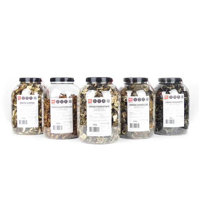 King Oyster King Oyster mini ShiiTake Enoki Shimeji white Shimeji brown Shiitake BIO Shiitake mini Oyster mushroom Chestnut mushroom Portobello White mushroom Monkeyhead Maitake/ Hen of the woods Cauliflower mushroom Yellow oyster mushroom Sint George Mushroom Chanterelle Chanterelle Grise / Jaune Black Trumpet Pied de Mouton Morel Cepes Black truffle White truffle Other mushrooms Dried wild mushrooms King Oyster (Eryngiii) 2 pieces King Oyster (Eryngiii) 3 pieces King Oyster mini packed ShiiTake packed Shiitake NL packed Shiitake NL XL packed Portobello 2 pieces Oyster mushroom packed Asian mix Luxe mix Hot Pot mix Premium mix Wok mix Pied de Mouton packed Shawarma mix Loempia mix Noodle soup mix Shiitake BBQ mix Gourmet mushroom mix Cultivated mix 3kg
