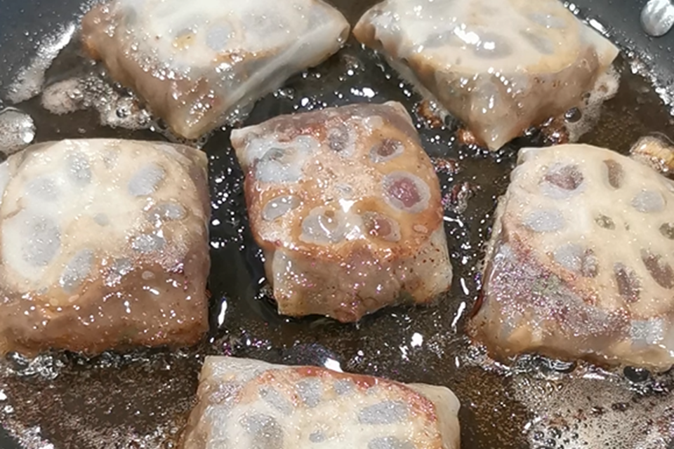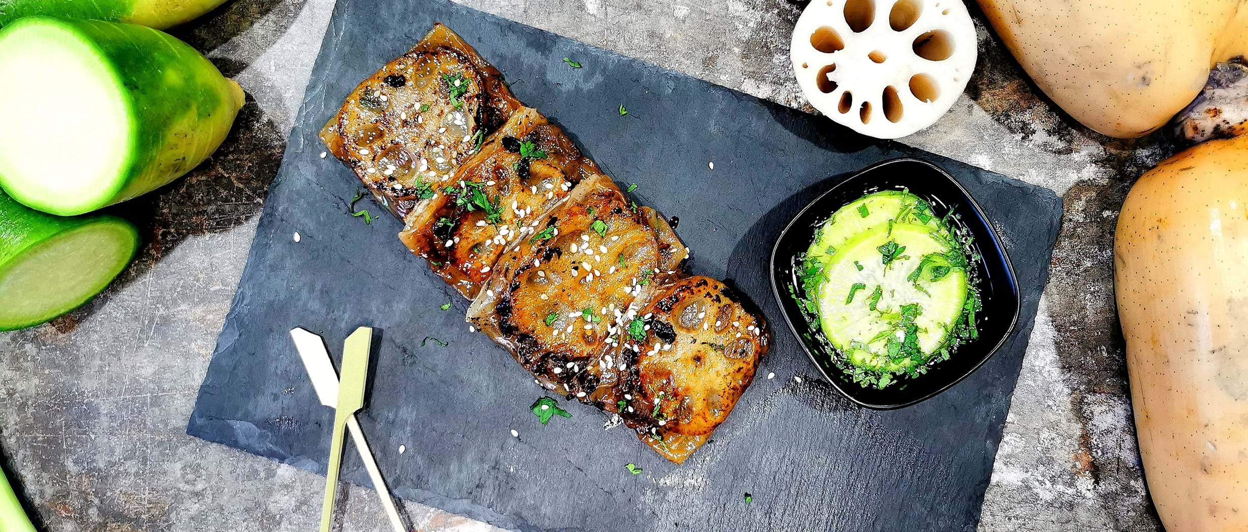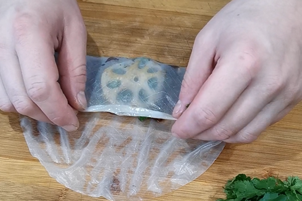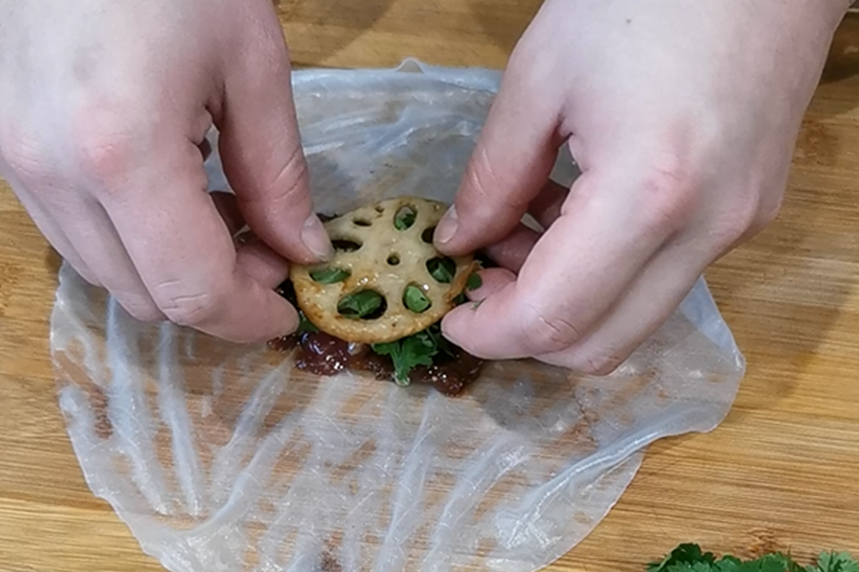 M. Lotus root Bulgogi rolls with pickled green radish