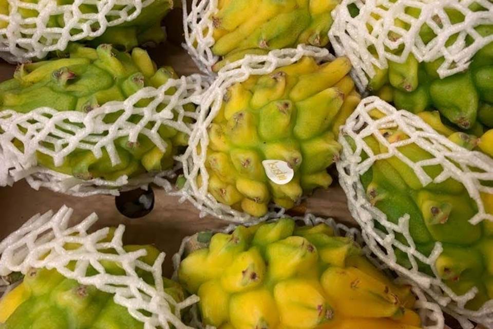 La plante pitahaya | 麒麟果 est un parent du cactus. Son fruit exotique est appelé pitahaya ou encore fruit du dragon (ou en anglais dragon fruit). La pitahaya n'est pas seulement belle, elle est aussi délicieuse ! Le fruit est de couleur jaune ou rouge (红心火龙果) et sa chair juteuse est blanche ou rouge et contient toutes les petites graines noires. La saveur légèrement sucrée rappelle une combinaison de melon et de kiwi. Le fruit est mûr lorsqu'on peut le peler aussi facilement qu'une banane.