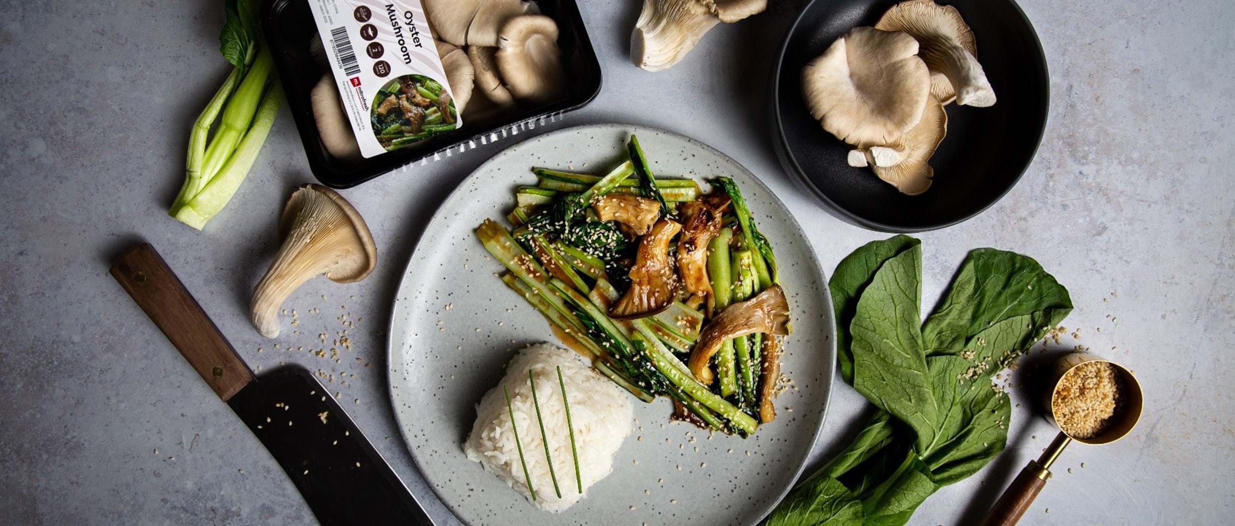 Notre Choi sam, un légume chinois à la texture croquante et juteuse. Plus épicé que le paksoi mais aussi facile à préparer et à combiner avec tous nos champignons. Pour ce plat d'accompagnement, nous avons choisi de le combiner avec les pleurotes dans la sauce aux huîtres. A s'en lécher les doigts !