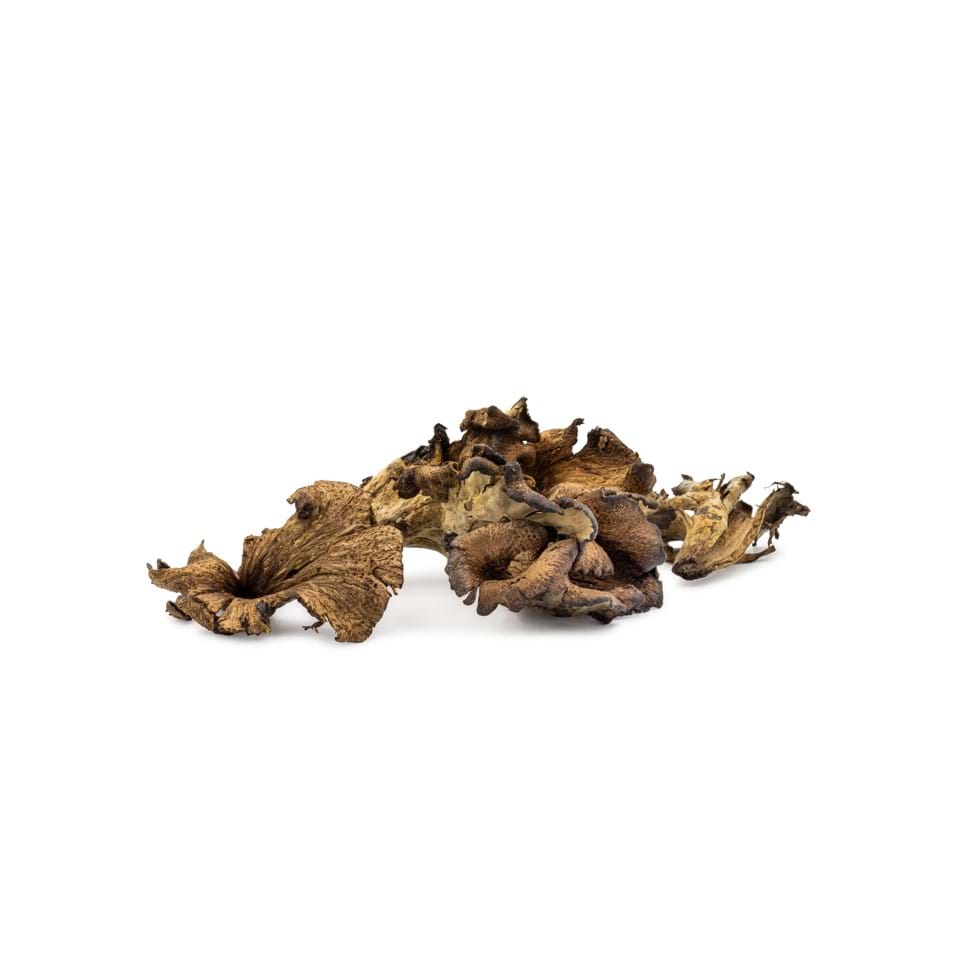 Onze zwarte trompet paddenstoel, ook bekend als de trompette de la mort of ‘Hoorn van overvloed’. Het is een eetbare wilde paddenstoel die moeilijk te vinden is. Dit komt door de donkere zwarte kleur. Wij hebben deze pareltjes in het wilde paddenstoelen seizoen!