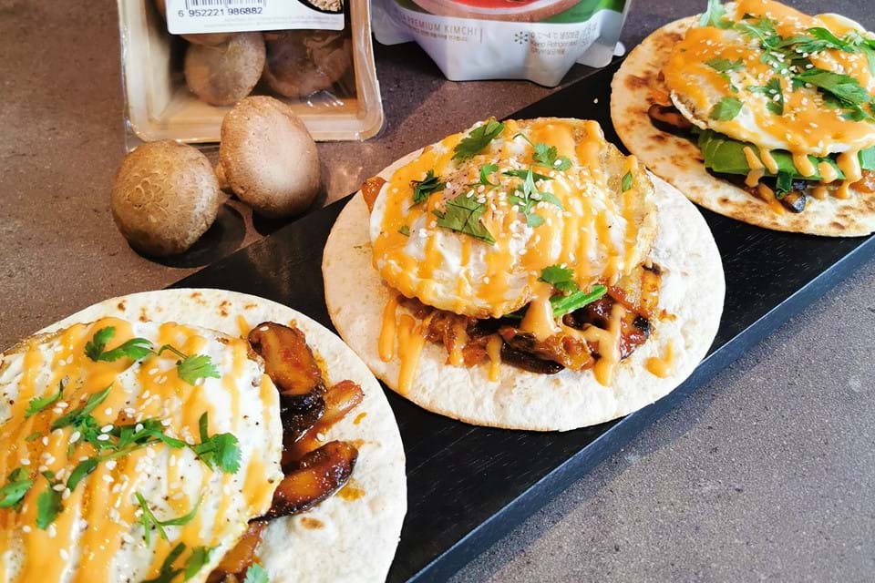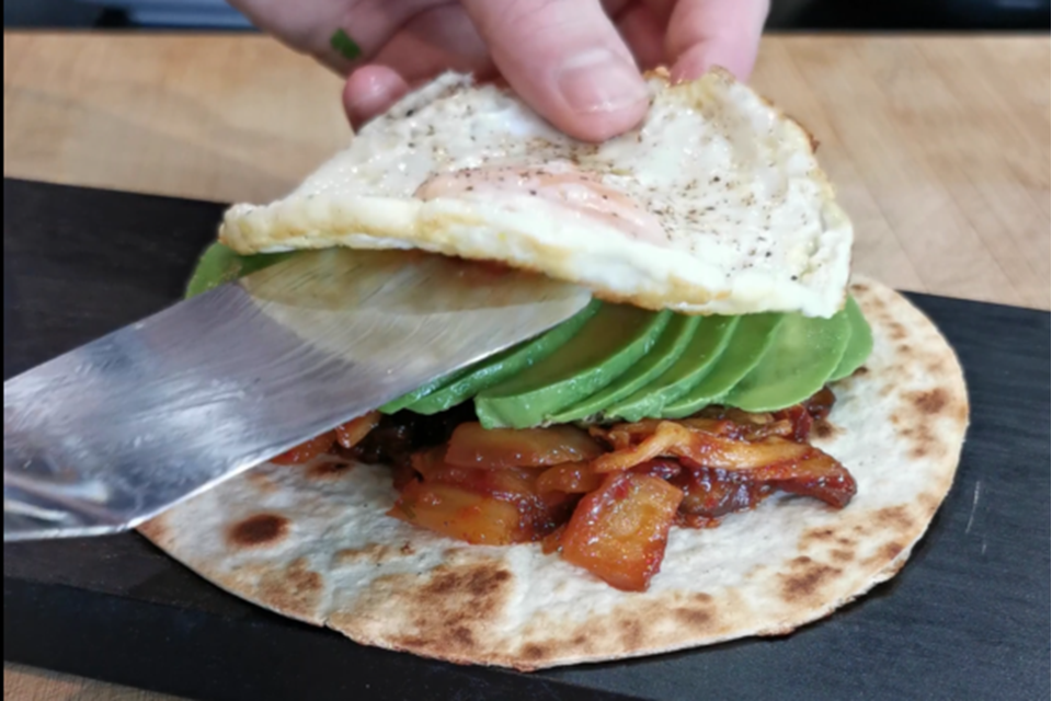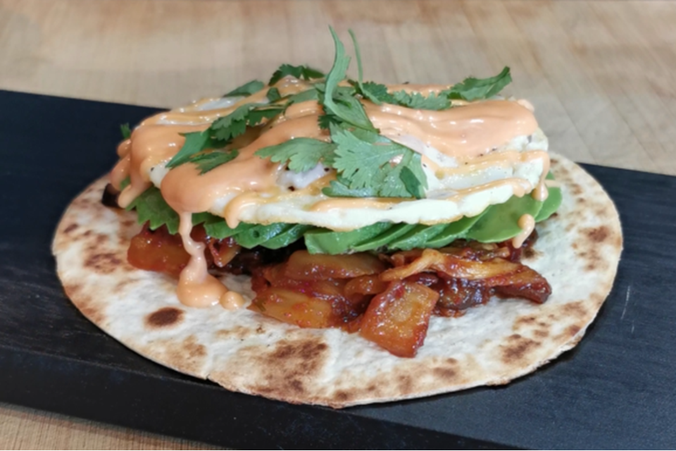 Neem een compleet en lekker ontbijt met onze Kimchi & Shitake breakfast tacos.