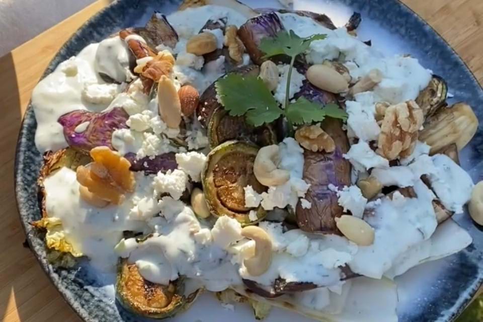 Geniet van je zonnige dag met onze gezonde en super lekkere Aziatische Mediterraanse gegrilde salade.