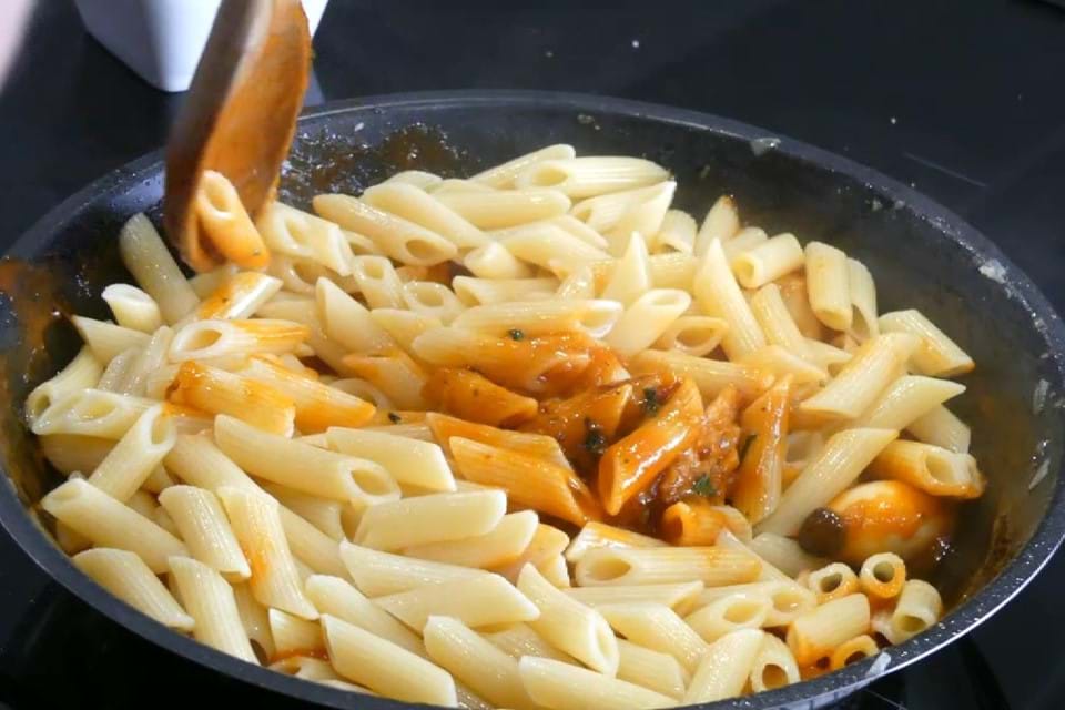 Pasta alla fungi met tomatensaus