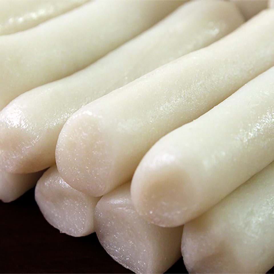 Rice cake, een deeg van water en rijstmeel. Kleefrijstmeel, of een mengsel van die twee, dat eerst wordt gestoomd en daarna een tijdlang gekneed wordt zodat de gluten goed vrij komen en het deeg super elastisch en plakkerig wordt. De structuur is chewy en plakkerig (als taaie Italiaanse penne), de smaak is die van rijst.