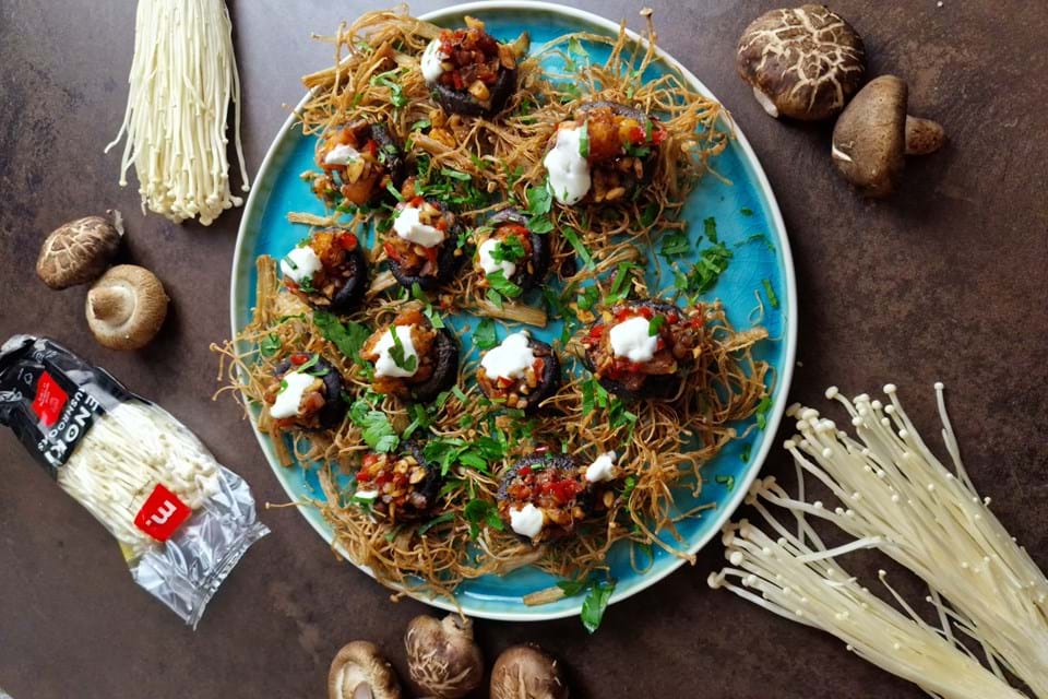 Voor de lunch, verkiezen we hete soep. Enoki en Shimeji doen het altijd goed voor ons. 's Avonds hebben we meestal niet veel tijd. Dan grillen we iets. Eryngii of Shiitake paddenstoelen in sojasaus. Lekker met rijst. Of we maken een stoofpotje. Eddoes en Am Choi veggies zijn onze favoriete combo.
