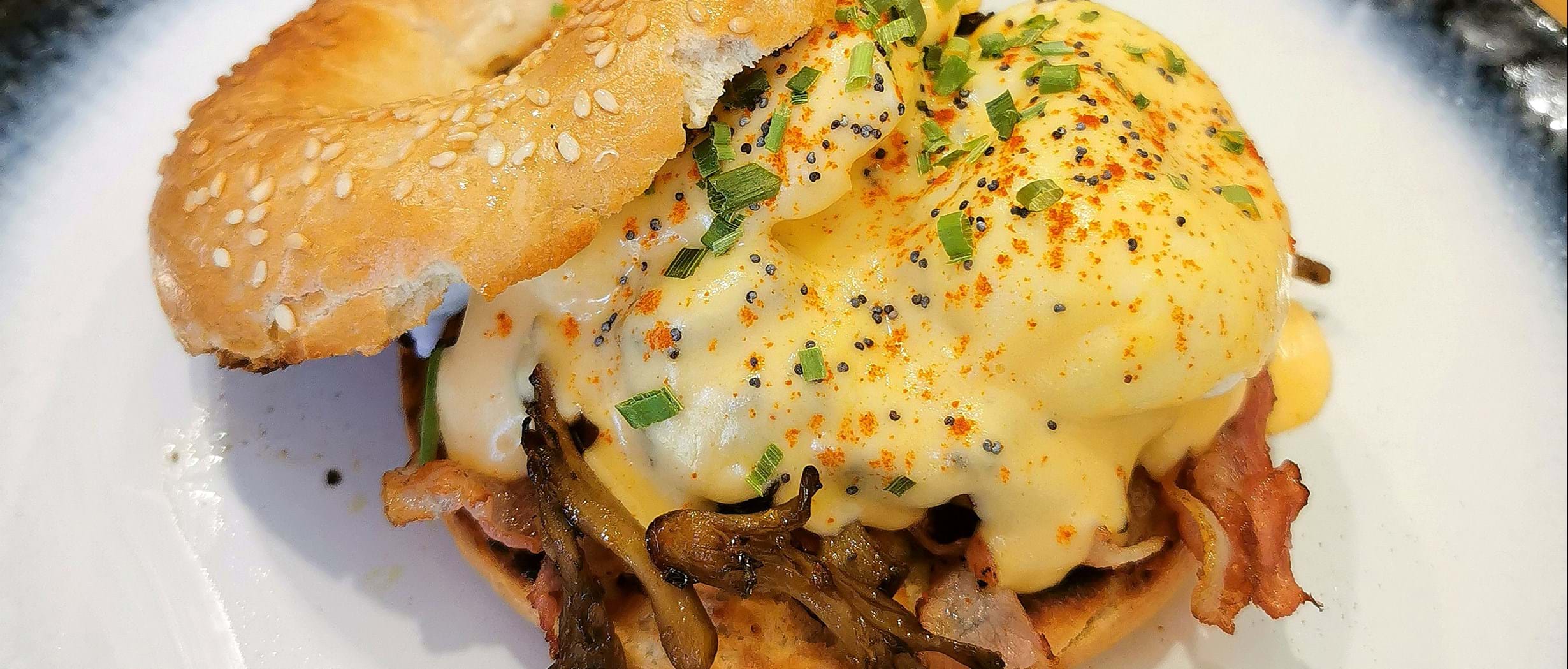 Begin je dag met deze super lekkere en romige bagel! We voegden onze M. Maitake Paddenstoelen toe om die vlezige bite te geven.