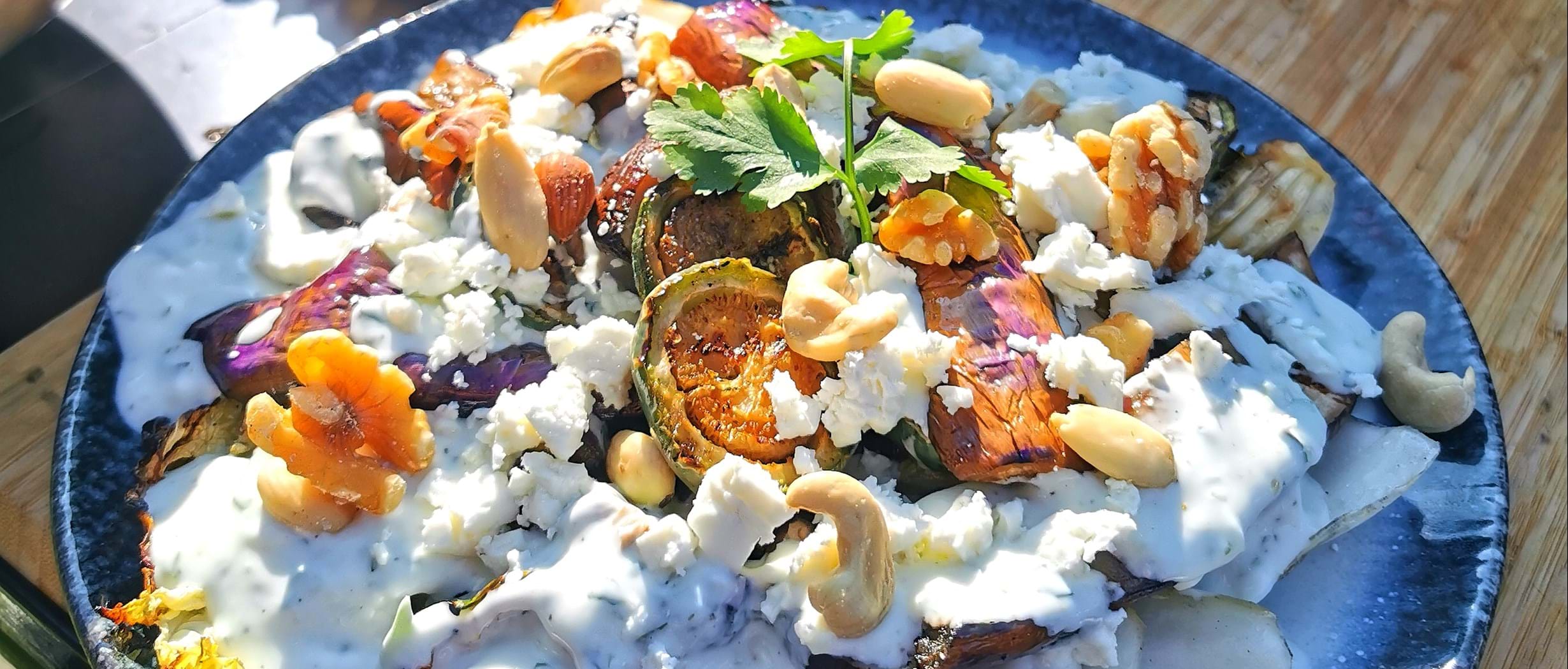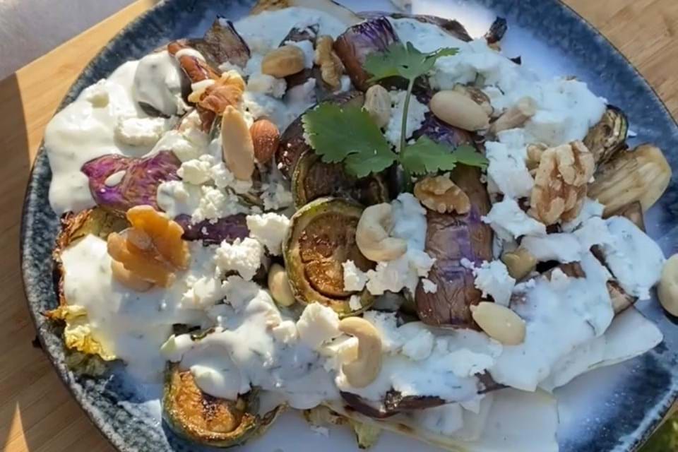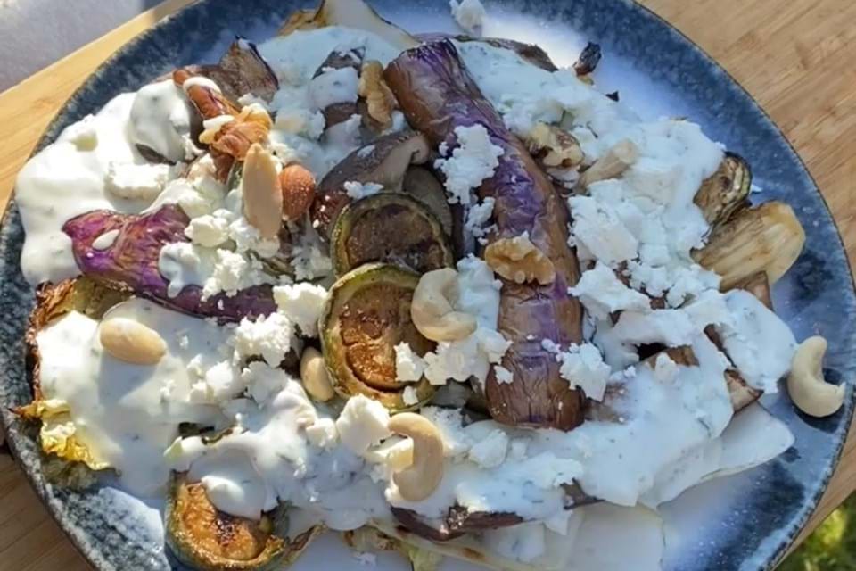 Geniet van je zonnige dag met onze gezonde en super lekkere Aziatische Mediterraanse gegrilde salade.